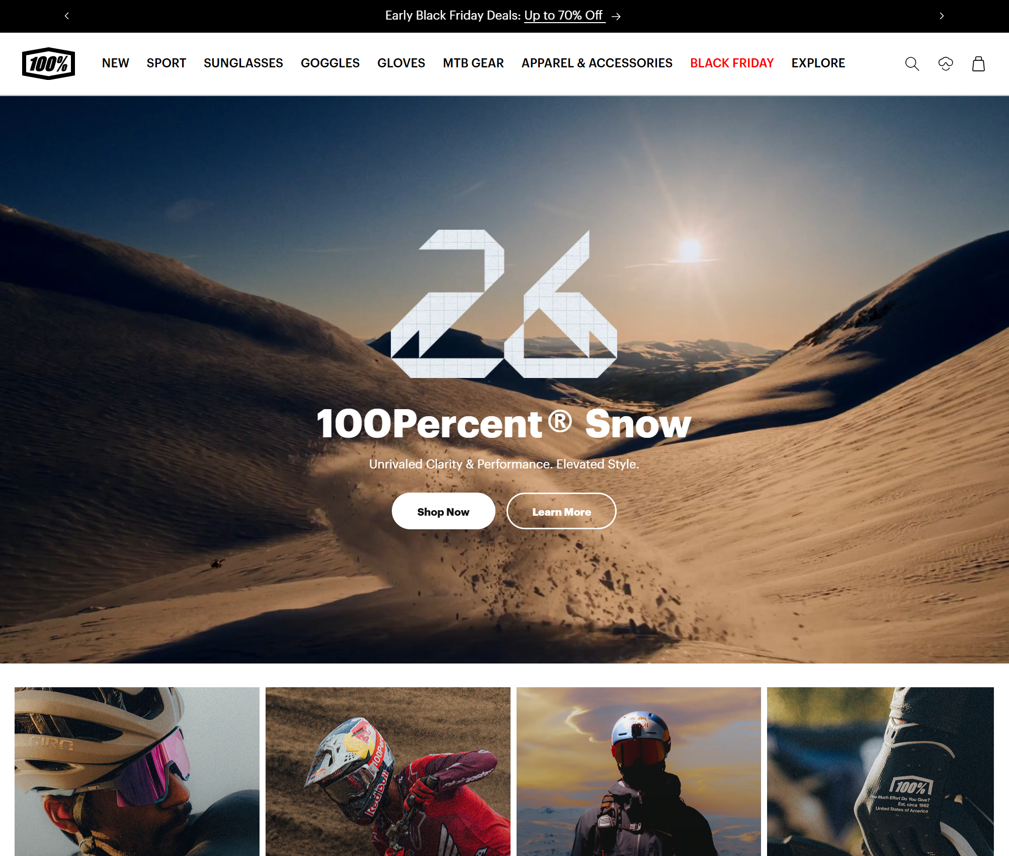 100% is a high-energy lifestyle and performance brand known for its premium eyewear, goggles, gloves, and biking gear. What started as a symbol of motocross passion has evolved into a global brand worn by athletes, creators, and everyday riders who give — as the name says — their 100%.